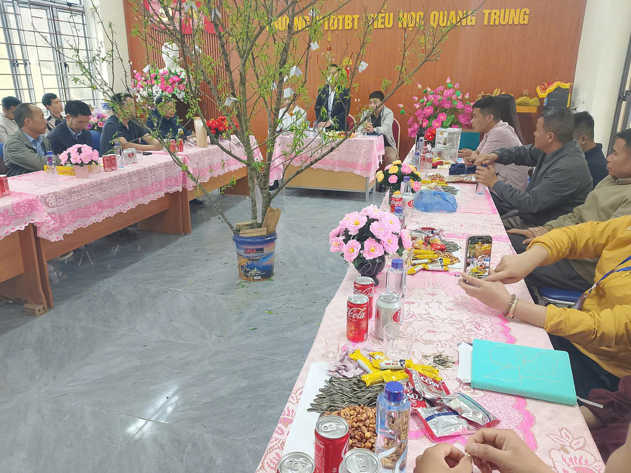 Những ngày nghỉ tết nguyên đán Bính Ngọ an toàn, vui vẻ, hạnh phúc bên gia đình của tập thể CBGVNV trường PTDTBT Tiểu học Quang Trung đã trôi qua. Hôm nay, ngày 23/2/2026 (tức ngày mùng 7 Tết Bính Ngọ) trong tết xuân ấm áp, mưa xuân nhẹ bay. Trường PTDTBT TH QuangTrung tổ chức khai xuân, các đồng chí cán bộ, giáo viên, nhân viên của nhà trường tưng bừng chào đón những ngày đầu năm mới tràn ngập niềm vui và không khí vui tươi phấn khởi của mùa xuân. Trong căn phòng nhỏ tràn ngập tràn tiếng nói cười rôm rả, những lời chúc tụng đầu năm, đồng chí Đinh Văn Liễu – Bí thư chi bộ, Hiệu trưởng nhà trường- đã có lời chúc tốt đẹp tới toàn thể anh chị em trong nhà trường. Đồng thời bày tỏ kỳ vọng về một năm học tràn đầy năng lượng, sáng tạo và đạt nhiều thành tích nổi bật. Những lời chúc giản dị đó đã lan toả tinh thần đoàn kết, quyết tâm trong tập thể sư phạm. Không khí buổi gặp mặt đầu xuân thật ấm áp, vui tươi hứa hẹn một năm mới nhiều niềm vui và thắng lợi của tập thể cán bộ, GV, nhân viên trong nhà trường.