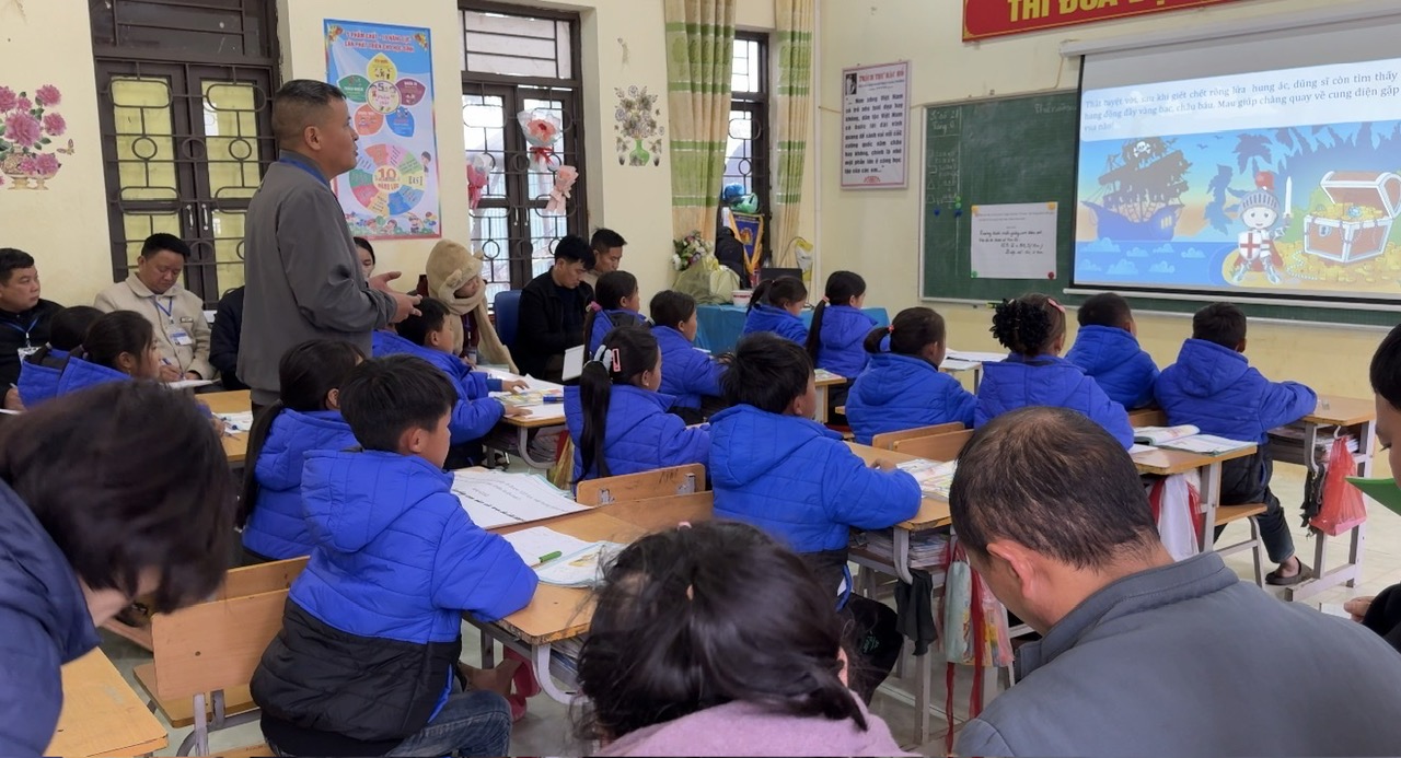 Thực hiện kế hoạch năm học và sinh hoạt chuyên môn, chuyên đề năm học 2025 - 2026 của nhà trường, nhằm nâng cao chất lượng dạy học môn Toán ở bậc tiểu họcTrường PTDTBT Tiểu học Quang Trung đã tổ chức chuyên đề cấp trường môn Toán lớp 5 với sự tham gia đầy đủ của Ban giám hiệu và toàn thể giáo viên trong nhà trường. Chiều ngày 11/12/2025, Trường PTDTBT Tiểu học Quang Trung đã tổ chức sinh hoạt chuyên đề cấp trường theo hướng phát triển năng lực phẩm chất người học. Buổi sinh hoạt tập trung vào bước 3: Dạy minh họa tiết học và chia sẻ bài dạy minh họa môn Toán – lớp 5, bài Phép chia số thập phân – Tiết 2. Điểm nổi bật của tiết dạy minh họa là việc ứng dụng công nghệ trí tuệ nhân tạo (AI) vào quá trình dạy học, giúp bài giảng trở nên sinh động, trực quan và hấp dẫn hơn. Thông qua các công cụ hỗ trợ AI, giáo viên dễ dàng tương tác, đánh giá và gợi mở tư duy sáng tạo cho học sinh, giúp các em tiếp thu kiến thức một cách tự nhiên và hiệu quả. Tiết dạy minh họa được chuẩn bị chu đáo, thể hiện tinh thần đổi mới trong phương pháp giảng dạy, lấy học sinh làm trung tâm. Qua tiết học, các em được chủ động khám phá kiến thức, phát triển năng lực ngôn ngữ và kỹ năng hợp tác trong học tập; đồng thời, giáo viên có cơ hội thực hành, quan sát và rút kinh nghiệm từ thực tế lớp học. Sau phần dạy minh họa, các thầy cô trong nhà trường đã cùng nhau trao đổi, thảo luận, chia sẻ kinh nghiệm và đề xuất giải pháp nâng cao hiệu quả giảng dạy, hướng tới phát triển năng lực, phẩm chất học sinh theo yêu cầu đổi mới giáo dục hiện nay. Buổi sinh hoạt chuyên đề khép lại trong không khí đoàn kết, học hỏi và đầy hứng khởi. Đây là dịp để mỗi giáo viên Trường PTDTBT Tiểu học Quang Trung cùng nhìn lại, trau dồi và tiếp tục đổi mới, sáng tạo, ứng dụng công nghệ vào giảng dạy, góp phần thực hiện thắng lợi nhiệm vụ năm học 2025 - 2026.
